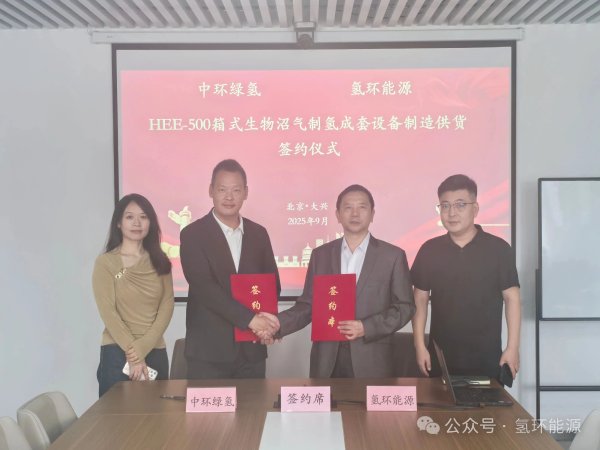 2025年9月16日,北京氢环能源技术有限公司与中环绿氢(江门)能源科技有限公司在北京成功举行HEE-500箱式生物沼气制氢成套设备制造供货协议签约仪式。氢环能源董事长谢中东、中环绿氢董事长梁信等双方代表共同出席并见证这一重要时刻。